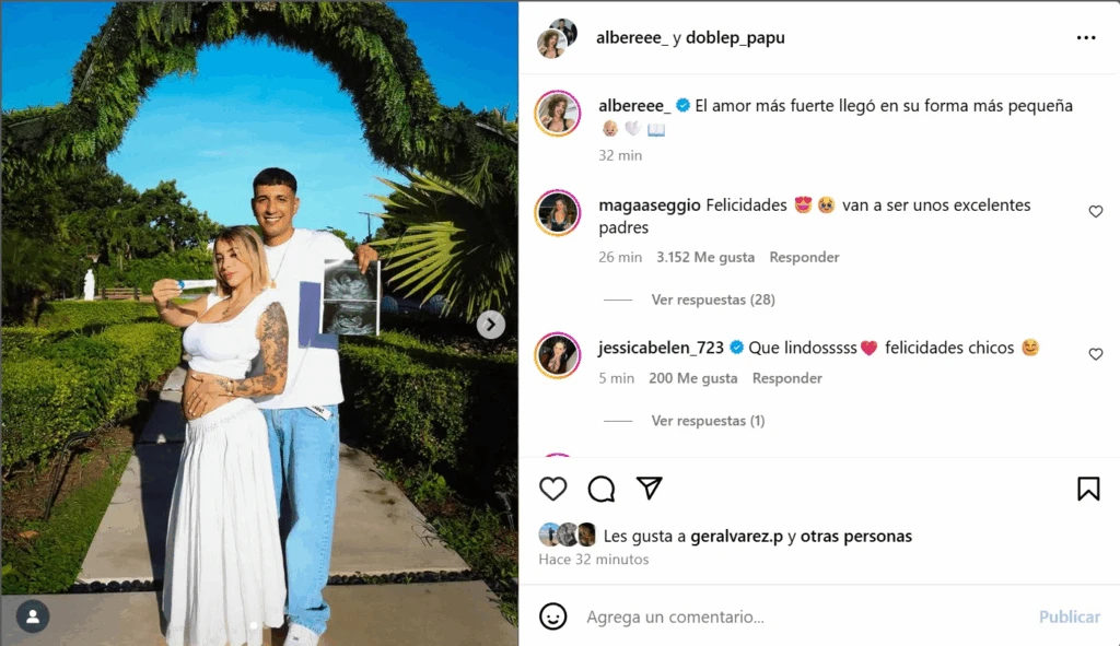 Rápidamente, el posteo se llenó de comentarios de diferentes famosos felicitando a los padres. Cabe destacar que es la primera vez que tendrán un hijo y en más de una ocasión, la influencer confesó que su sueño era formar una familia con el amor de su vida.