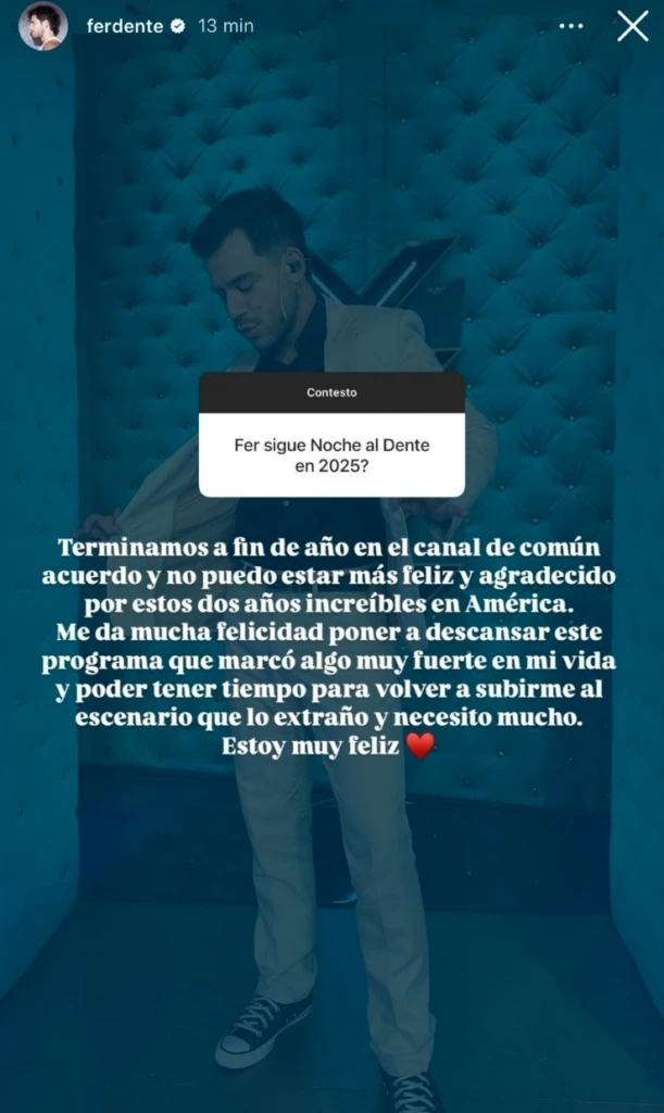 “¿Fer sigue Noche al Dente en 2025?", fue una de las consultas que le dejaron depositadas en la caja que abrió de preguntas y respuestas. Siendo totalmente honesto con esta situación, hizo un pequeño descargo para contar lo que pasó.