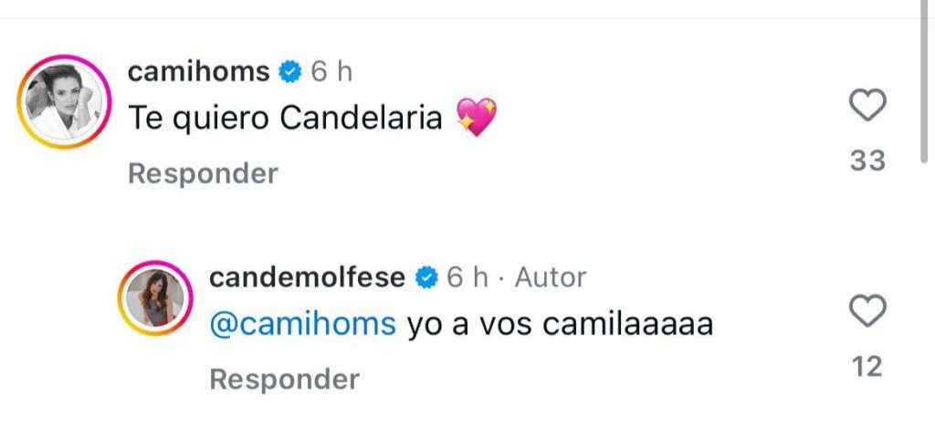 Camila Homs le dejó un comentario a Cande: "Te quiero Candelaria". Y Molfese le respondió: "Yo a vos Camila". Las fanáticas de Tini Stoessel se mostraron en contra de la actriz por el gesto que tuvo al formar una amistad con la mayor enemiga de su amiga.
