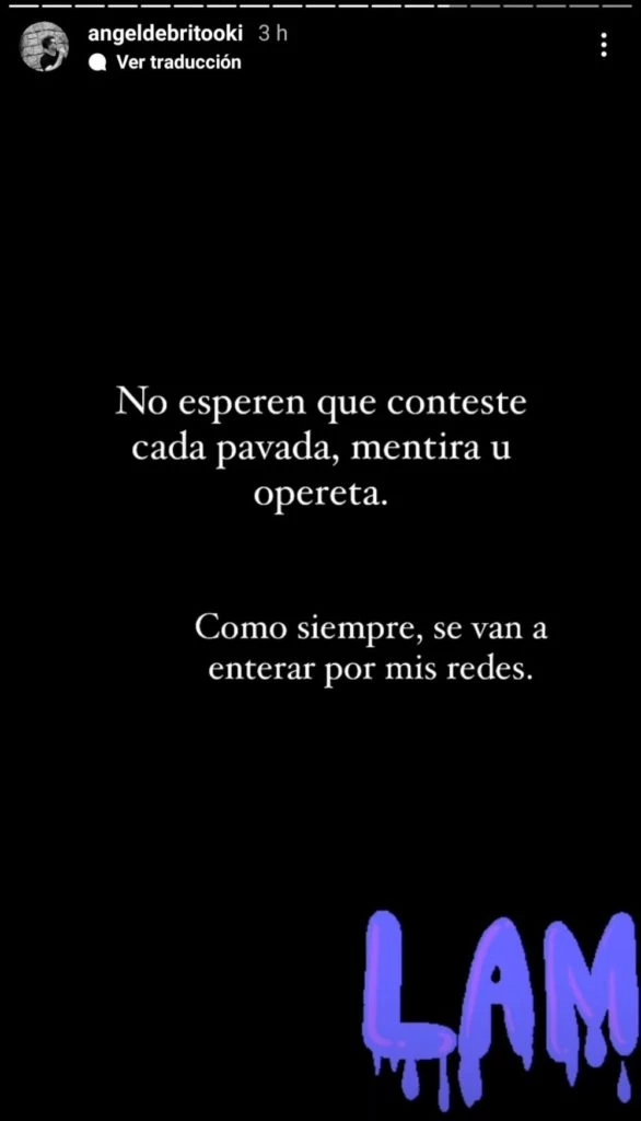 Mientras tanto, tras disfrutar de sus vacaciones en Mar del Plata y Uruguay, Angelito sigue informando vía sus historias de Instagram, donde tiene un fluido ida y vuelta con sus seguidores, y donde, a veces, también se harta y explota.