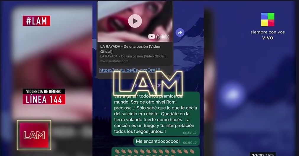 La actriz se sentó, el viernes, en el living de LAM y aseguró que el artista la maltrató durante la grabación de la tira Noche y día, producida por Polka y emitida en eltrece durante el 2014. Incluso, la famosa aseguró que durante una fiesta de Paparazzi en enero de 2020 en Villa Carlos Paz le gritó al oído: “Tanto quilombo por ser una puta falopera”.