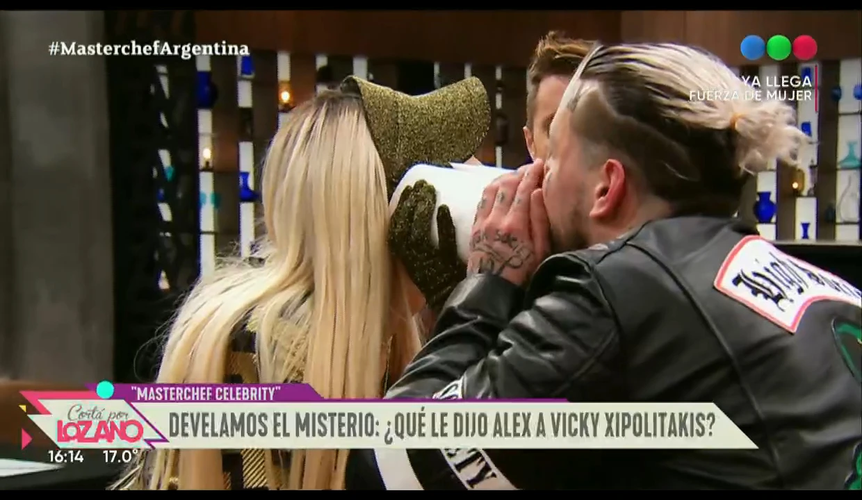 Luego, después de un pícaro intercambio de miradas, Alex agarró un rollo de cocina y le dijo unas palabras al oído a Vicky que no salieron al aire. La modelo quedó sorprendida con lo que le dijo el mediático y se fue riendo.