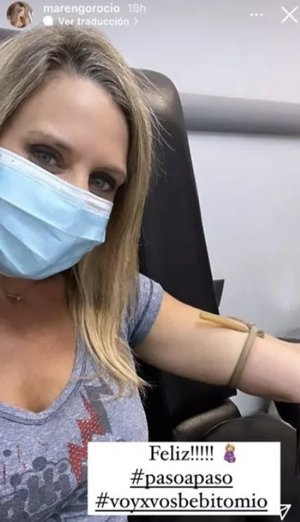 En este sentido, en una storie se la puede observar sacándose sangre, para lo que parece ser un estudio clínico y exclamó : “¡Feliz!” “Paso a paso” “Voy por vos bebito mío”.