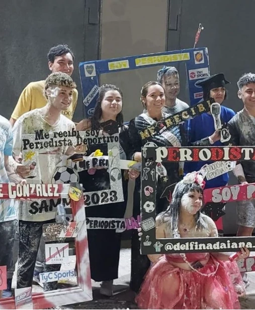 En las fotos que publicó se la puede ver con su familia y sus compañeros de estudio. En varias de las fotos a parece sosteniendo el cartel que anuncia que se recibió de periodista llena de espuma y harina para festejar ese momento único.