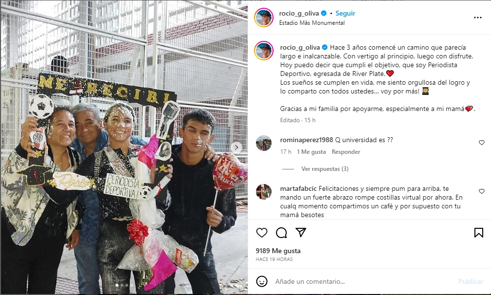 Por último, Oliva escribió: “Los sueños se cumplen en vida, me siento orgullosa del logro y lo comparto con todos ustedes… voy por más”, cerró demostrando que tiene muchos proyectos para su futuro profesional.