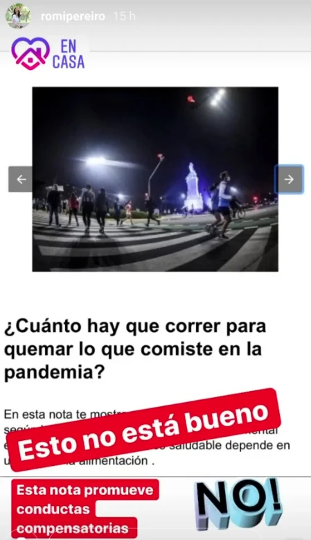“Esto no está bueno. Esta nota promueve conductas compensatorias”, advirtió la defensora de la alimentación saludable, en referencia a un texto publicado bajo ese lema.