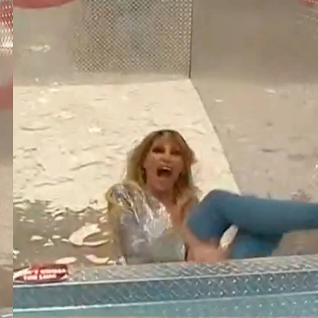 Y después de unos minutos en los que tanto el conductor como Xipolitakis y los miembros de de la producción se divirtieron estrellando platos contra el muro mientras pedían deseos e intenciones, la rubia dio un mal paso y sucedió lo inevitable.