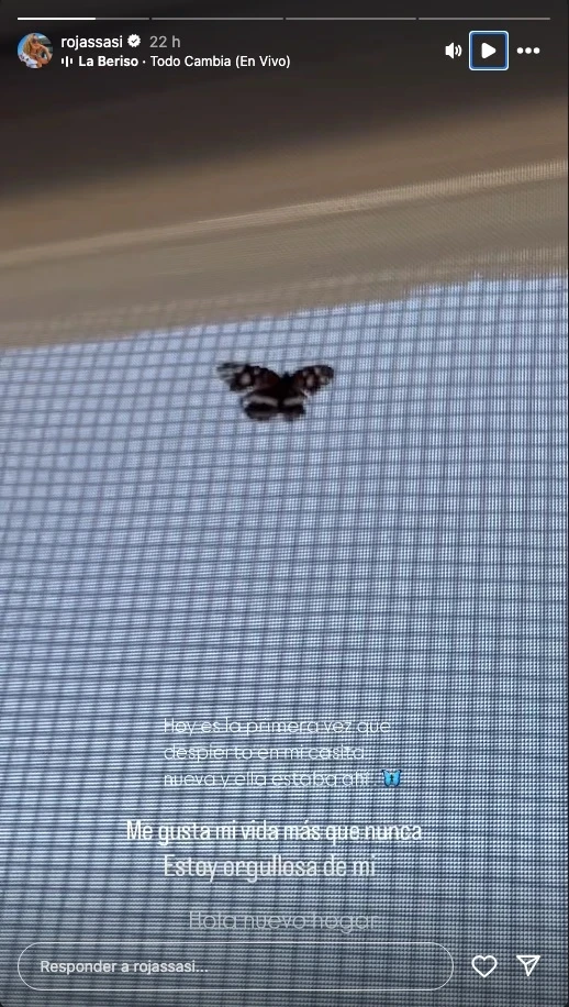 “Me gusta mi vida más que nunca. Estoy orgullosa de mi. Hogar nuevo hogar”, siguió explicando Sabrina mientras hacía una breve recorrida por su casa, para luego hablar de la mariposa que encontró y el significado de la misma: “La presencia de una mariposa dentro de la casa podría relacionarse con un presagio de cambios personales y crecimientos personales”.