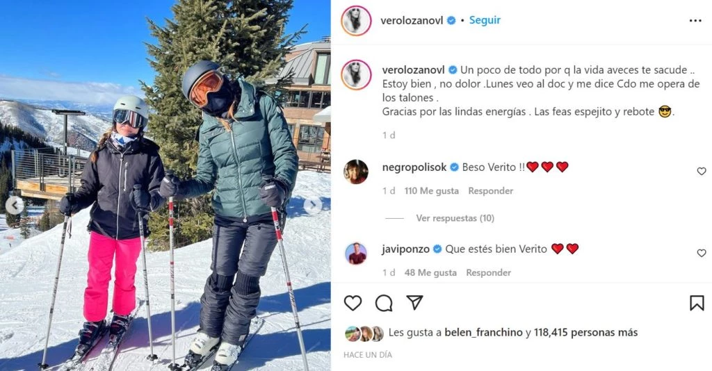 Vero Lozano no la está pasando nada bien, porque lo que empezó como unas vacaciones familiares de placer en la nieve en la topísima Aspen, siguió con un accidente digno de una película catástrofe para la conductora, que por estas horas vive bajo los efectos de los analgésicos, esperando la resolución de los médicos.