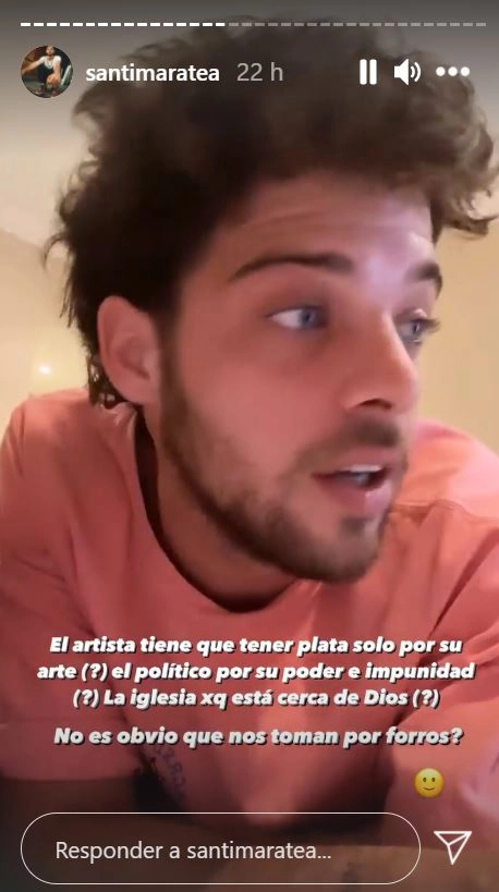 Todo empezó con el comentario de una mujer que marcó que “después de cada objetivo, se da un buen gusto pagado por los laburantes”. "Me estaba guardando este mensaje desde ayer. Primero, esto que dice Susana 'ahora Santi va a pedir plata para irse a Formentera' es totalmente cierto. ¡Lo caro que es Formentera!", arrancó Maratea.