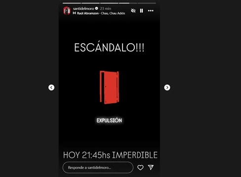 Desde que Santiago del Moro avisó que alguien sería expulsado de Gran Hermano, las redes estallaron con teorías. “Escándalo: expulsión. Hoy a las 21.45 horas”, escribió el conductor en Instagram, pero no dio más información. La noticia sorprendió a todos, porque nadie esperaba que la producción tomara una decisión tan fuerte en este momento.