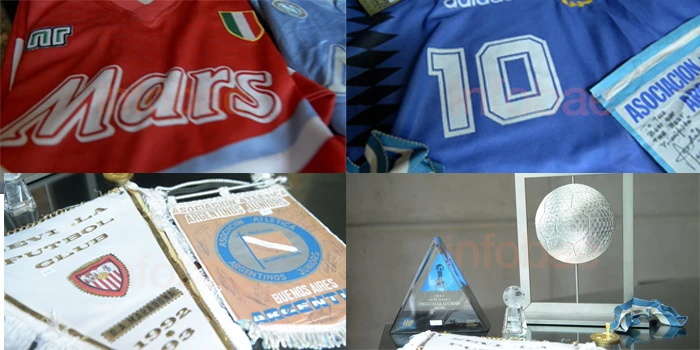 En las últimas horas, Infobae logró hacerse de las fotos de muchos de estos tesoros. Así se puede divisar artículos impresionantes como el premio al mejor jugador del siglo, las camisetas que se calzó en el Mundial de Estados Unidos de 1994 y un sinfín de casacas y regalos de su época dorada en Napoli.