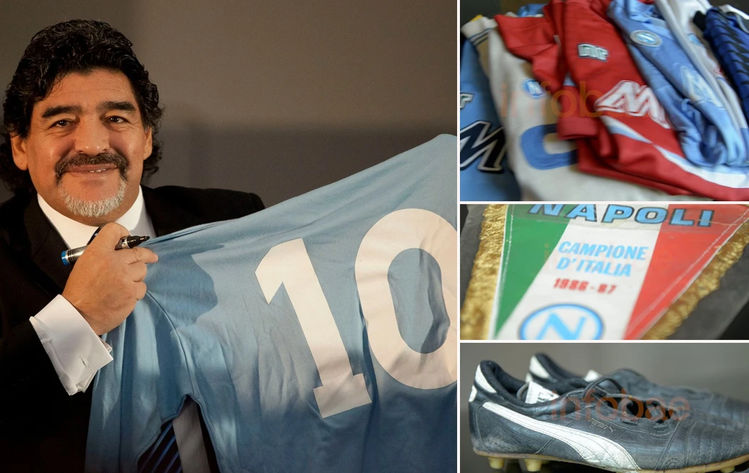 En las últimas horas, Infobae logró hacerse de las fotos de muchos de estos tesoros. Así se puede divisar artículos impresionantes como el premio al mejor jugador del siglo, las camisetas que se calzó en el Mundial de Estados Unidos de 1994 y un sinfín de casacas y regalos de su época dorada en Napoli.