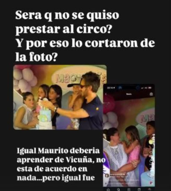 Instalada en esa ciudad, la angelita contó todo lo que sucedió: “¿Por qué Benjamín no subió nada del cumpleaños de su hija? ¿Por qué la China cortó a Vicuña de la foto de la torta? Benja fue con su novia pero nadie los mostró ni ellos subieron nada. Raro, ¿no?”.