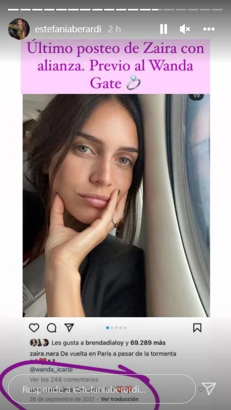 De hecho, la última foto que la modelo publicó con el anillo que le regaló Jakob data del año pasado, como lo hizo notar Estefi Berardi al compartir en sus redes la imagen, tomada en el avión y en septiembre de 2021, previo al Wandagate en el que su marido cumplió el rol de cómplice de Mauro Icardi.
