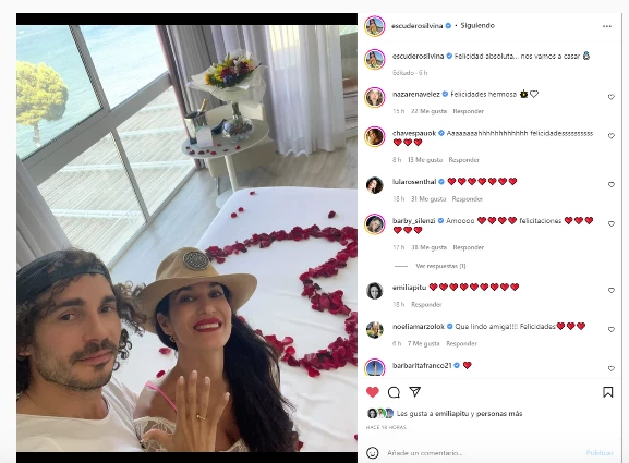 Tras describir con contenidos en sus redes sociales el gesto romántico de película que llevó a cabo Federico, al sorprenderla en plenas vacaciones por España con su mejor amiga y caer con el anillo, Escudero aportó más datos nuevos a esta trama.