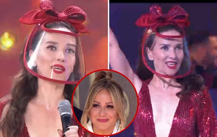 Natalia Oreiro apareció en medio de la coreografía vestida de rojo con un extravagante tapabocas haciendo juego: “Es hermoso estar acá, en un programa que le lleva alegría a la gente”, expresó al finalizar la presentación.