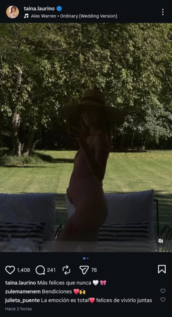 Taina, que se casó hace casi dos años, atraviesa uno de los momentos más especiales de su historia personal. Si bien suele mantener un perfil más bajo que su madre, eligió compartir la novedad con una publicación íntima y emotiva que rápidamente se llenó de mensajes de amor.