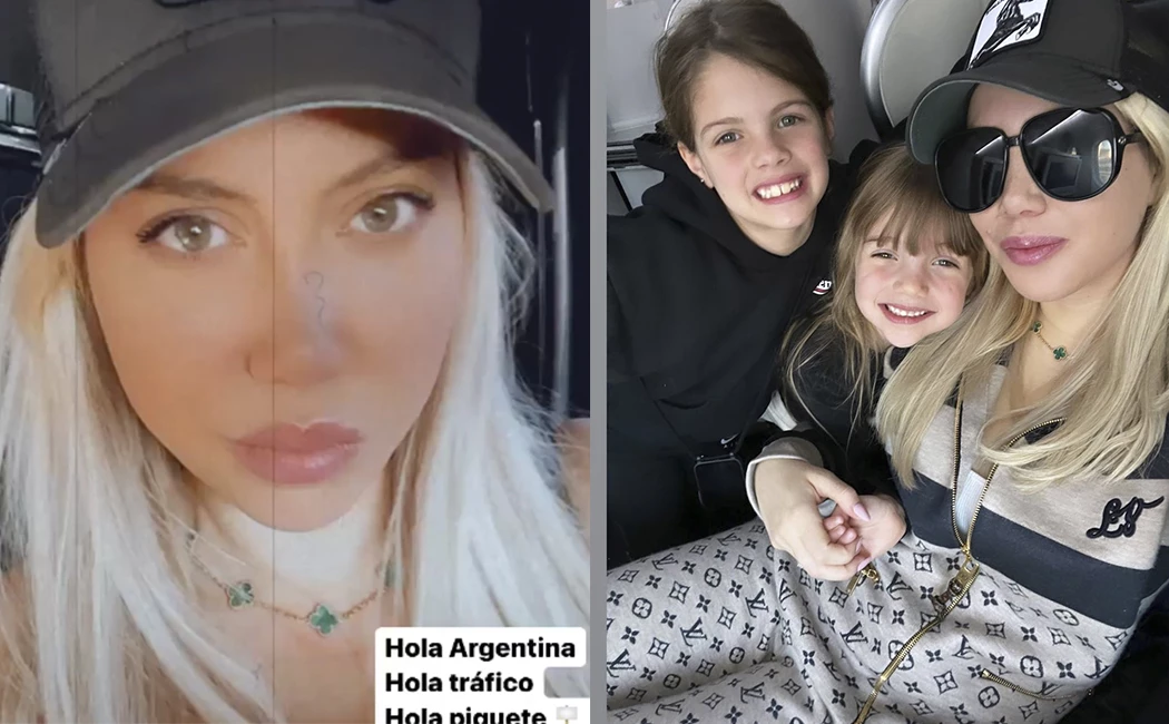 A la empresaria futbolera y de productos de cosmética la agarró un piquete en plena Autopista Riccheri y eso demoró más de lo previsto el ansiado abrazo con su madre y de las nietas con su abuela. Pero nada impidió que Wanda siguiera firme a la meta de su viaje.