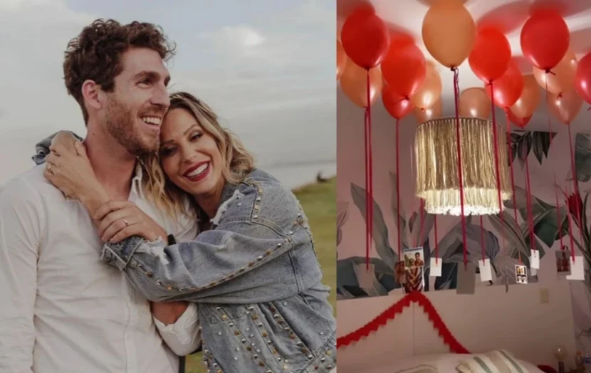 Pero luego de firmar la libreta de casados y de festejar con sus seres queridos, a la pareja le esperaba una gran sorpresa en la habitación donde pasaron su noche de bodas: una decoración muy especial, llena de fotos de los dos, globos y pétalos de rosas aquí y allá.