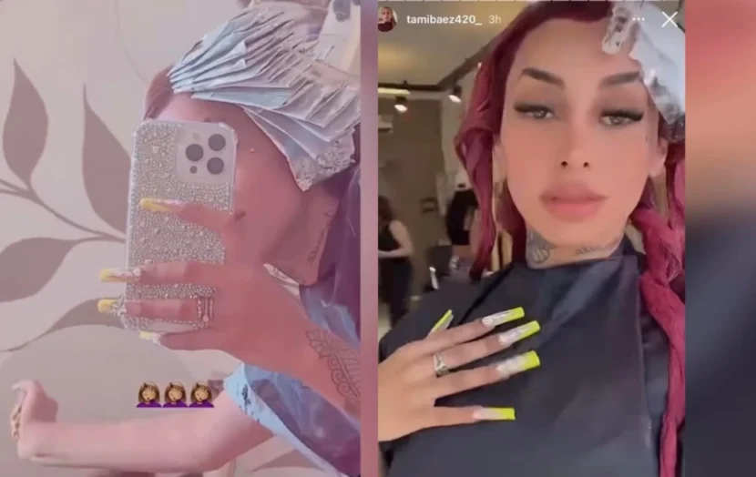 Tamara se animó a teñirse el cabello de un tono que mezcla colorado con dejos de fucsia. Asimismo, le sumó unos mechones ceniza en la parte de adelante. “Ay, Dios”, expresó Báez en su perfil de instagram debajo de un reel en el que mostraba el antes y el después de su melena.