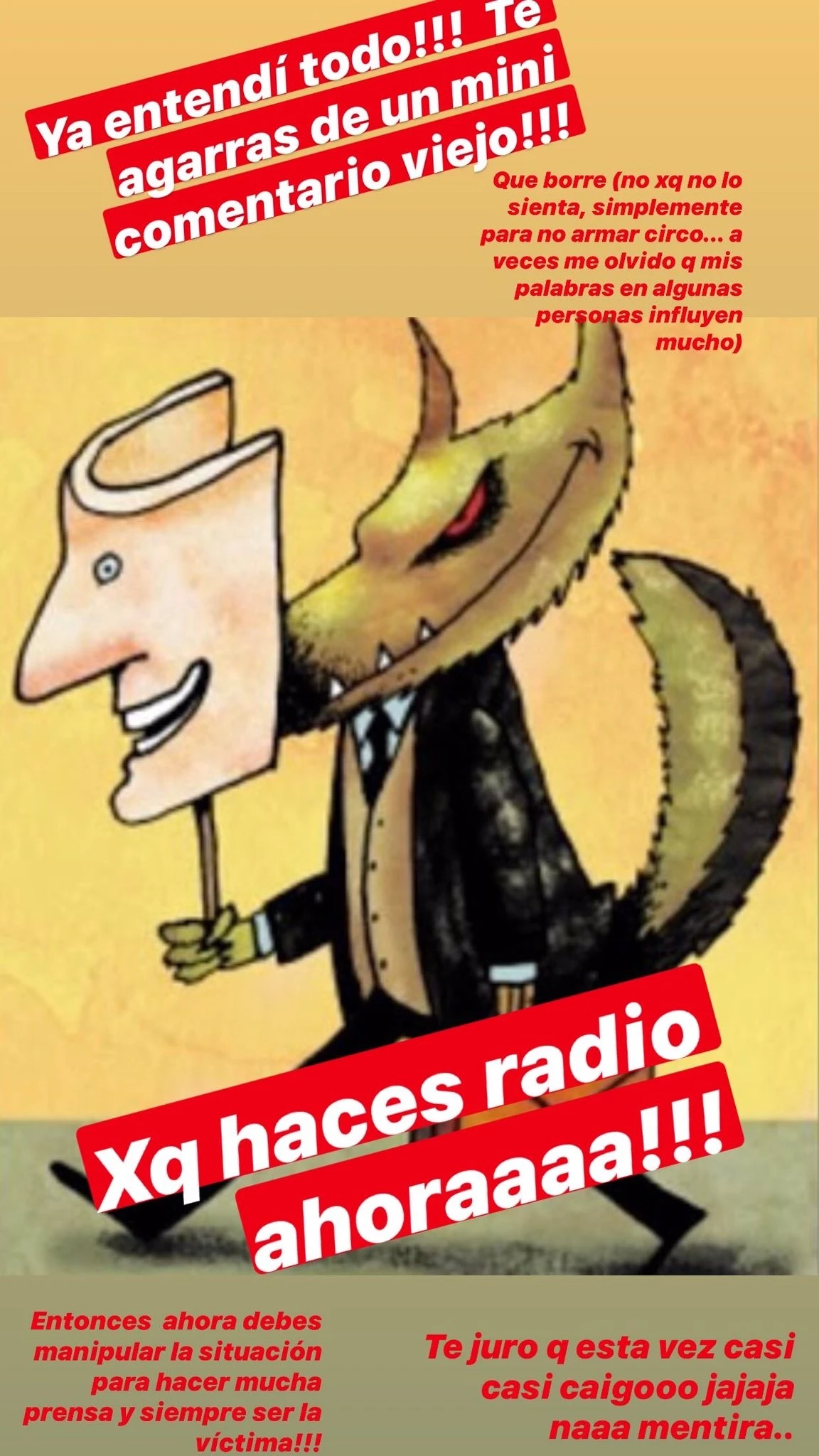 "ES MÁS FÁCIL SER VÍCTIMA Y PONER PALABRAS EN MI BOCA QUE NO DIJE PARA HACER UN CIRCO MEDIÁTICO Y TENER PRENSA GRATIS".