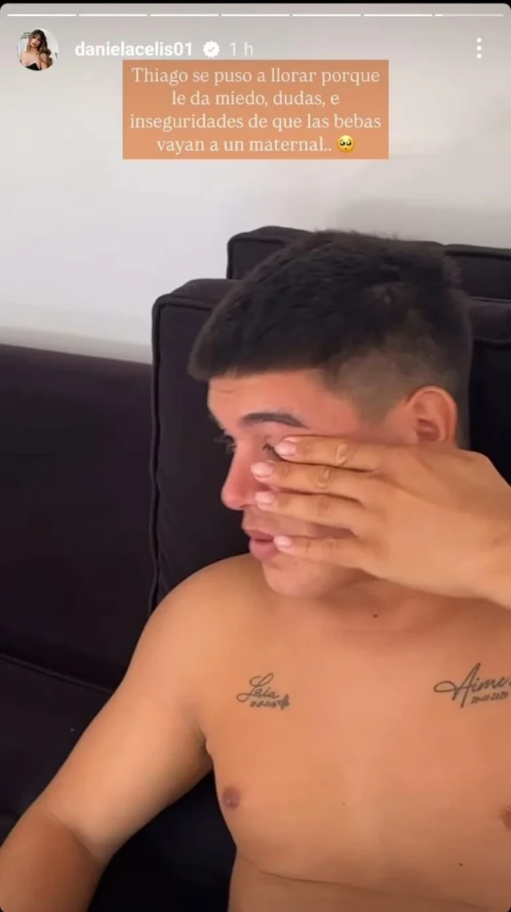 "Thiago se puso a llorar porque le da miedo, dudas e inseguridades que las bebas vayan a un maternal", explicó Daniela en sus historias de Instagram. El pedido que Celis le hizo a su pareja lo dejó en shock porque jamás se lo esperó y se mostró súper preocupado.