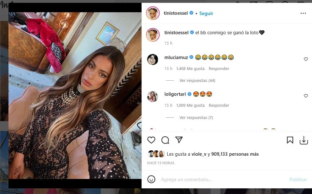 Cansada de leer y escuchar reproches en su contra, la cantante decidió expresarse a su modo y saltó a Instagram para postear un mensaje contundente contra los haters. Con una foto vestida de manera muy elegante, y con un gesto sensual, Tini escribió: “El bebé conmigo se sacó la lotería”.