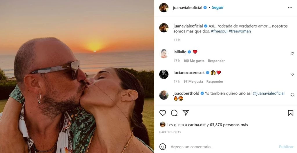 “Así… rodeada de verdadero amor…. nosotros somos más que dos. #freesoul #freewoman”, escribió Juana, libre, descontracturada y pícara, sabiendo que su gesto iba a generar todo tipo de teorías. Es que, acaso, ¿con Agustín habrían abierto la pareja? ¿Estábamos frente a un caso de poliamor?