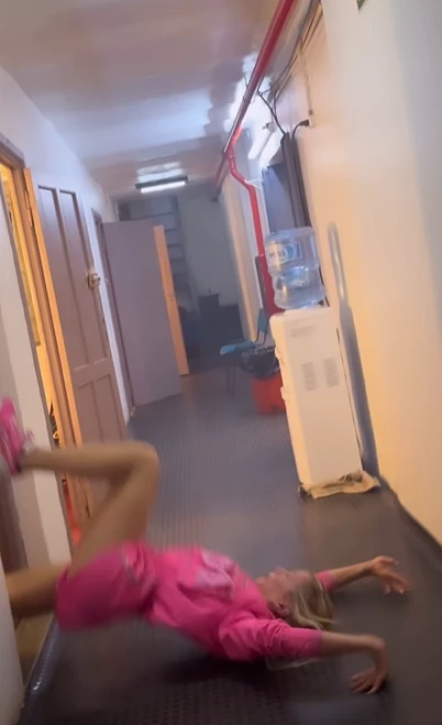 En el clip se puede observar que Laurita lleva una gran performance, pero en un momento pierde el equilibrio y golpea fuertemente la cabeza contra el piso. Según lo puesto en el video, solo faltaban 10 minutos para que salgan a realizar la función. Luego se la puede ver con hielo en la parte de atrás de su cabeza y riéndose del susto que pasó no solo ella, sino que también sus compañeros.