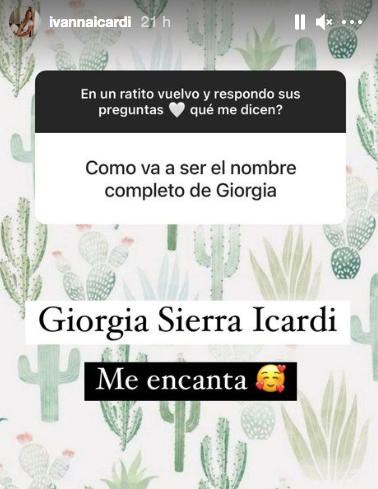 Desde un posteo en sus historias, Ivana contó que la nena en camino se llamará Giorgia y que, de común acuerdo con su pareja, llevará doble apellido: el de ella y el del padre.