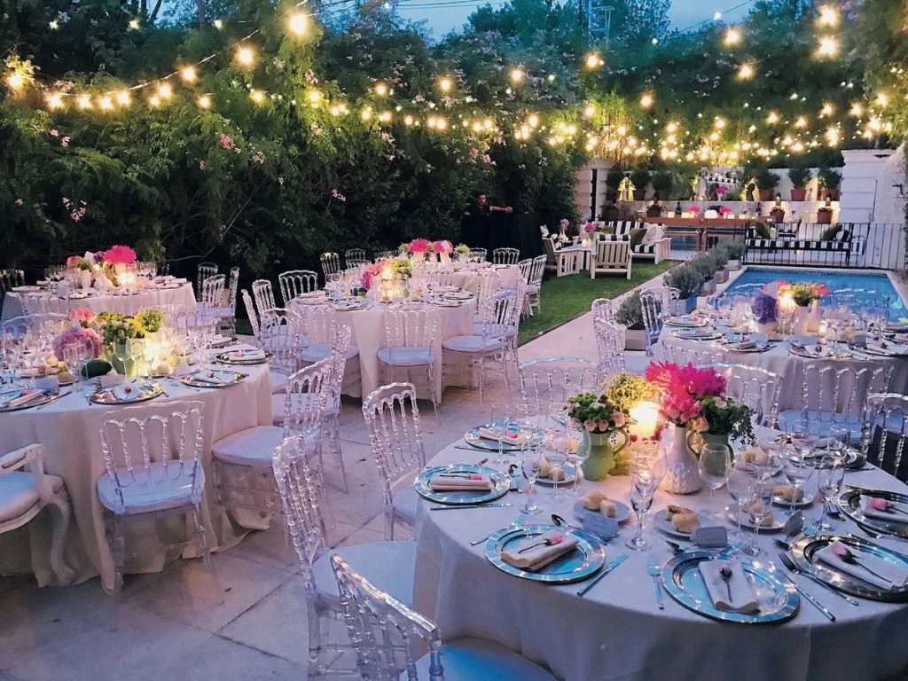Asimismo, la conductora decoró el sector al aire libre con tiras de luces cálidas que recaen sobre las cabezas de los participantes de la fiesta y generan un hermoso clima sin la necesidad de encender luces externas.