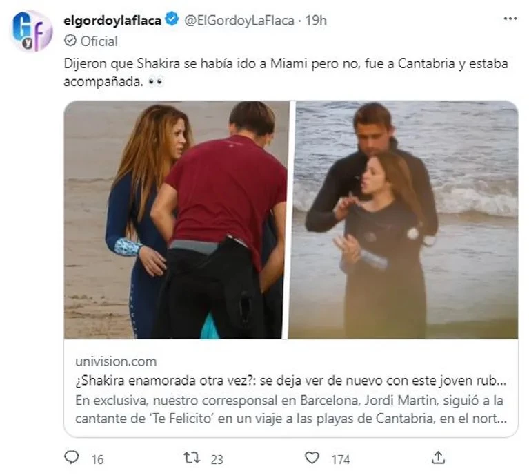 Si bien no hay nada confirmado y la artista sigue manifestando que esta soltera, los medios españoles aseguran que podría ser cierto ese supuesto affaire. De hecho, Jordi Martín, el paparazzi que sigue la vida y carrera de la cantante hizo una curiosa publicación en su cuenta de twitter que alimentó más dichos rumores.