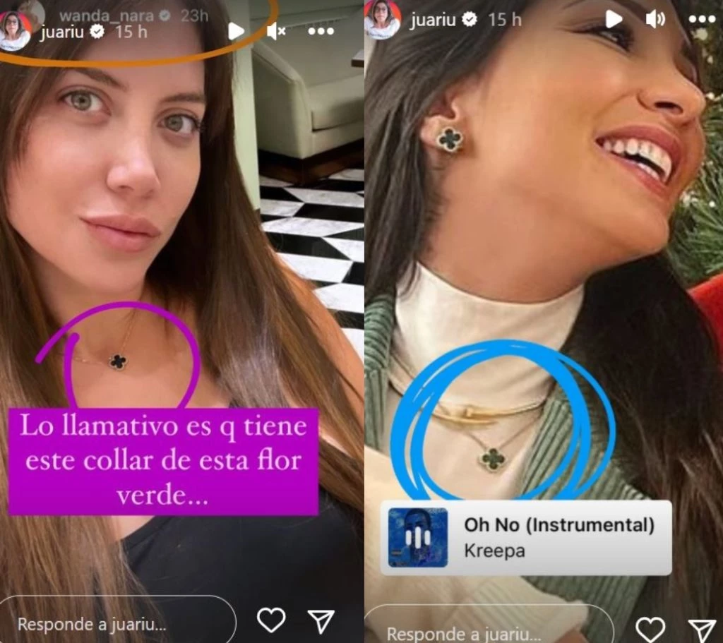 “Yo estoy encontrando detalles que suman”, escribió Vicky Braier en sus historias. Y agregó: “Lo llamativo es que Wanda tiene este collar de una flor verde. Y me puse a buscar… ¿y saben quién más tiene este collar?”.