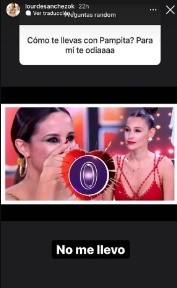 A través del sistema de preguntas y contestaciones que tanto usan los famosos hoy en día, Lourdes se sinceró y desde su cuenta de Instagram y contó cómo están las cosas con Pampita, luego de conocerse que la eliminaron del grupo de WhatsApp del programa.