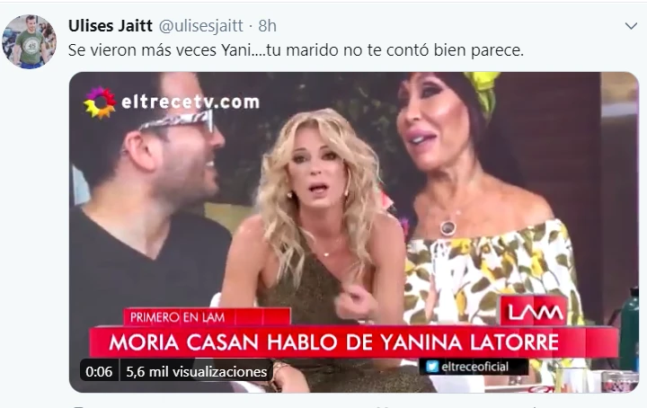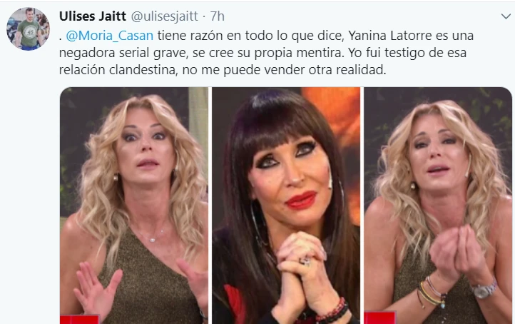 Y cerró: "Tiene razón en todo lo que dice Moria, Yanina Latorre es una negadora serial grave, se cree su propia mentira. Yo fui testigo de esa relación clandestina, no me puede vender otra realidad”.