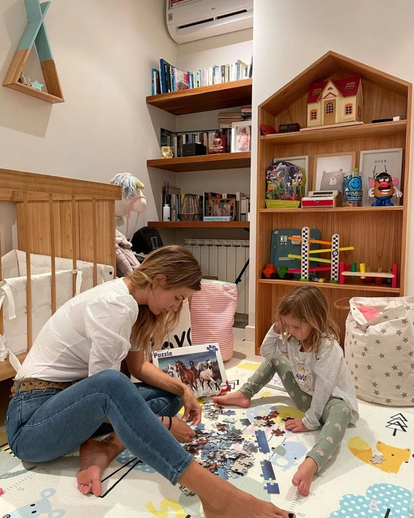 En la cálida imagen mostrada por Marcela, se la puede ver a ella junto a su hija súper concentradas intentando resolver un complicado rompecabezas que, al finalizarlo, les dejará una tierna imagen de varios caballos galopando libres por el campo.