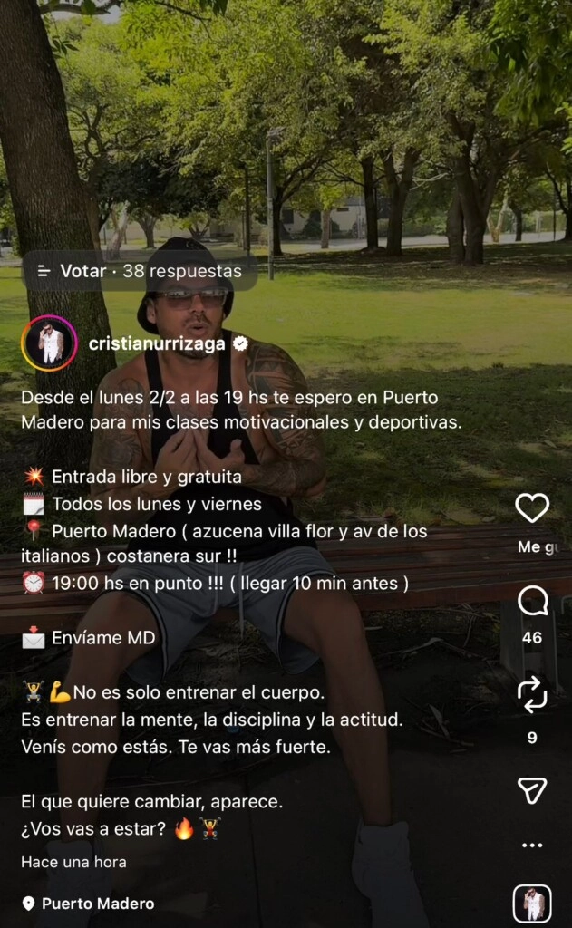 Luego de subir historias a sus redes sociales desde horas muy tempranas, caminando por su barrio a fin de hacer ejercicios y llevar una vida saludable, incentivando a otros a seguir sus pasos sin necesidad de gastar dinero ni tomarlo como un sacrificio, Cristian sorprendió al anunciar su proyecto personal.