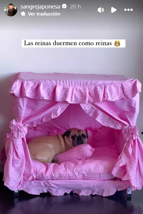 Siempre atenta a los detalles deco, Sangre Japonesa no es de aquellas personas que acomodan a sus animales así nomás. Por eso, la artista mandó a traer de Estados Unidos una espectacular camita para que sus perris descansen como merecen.