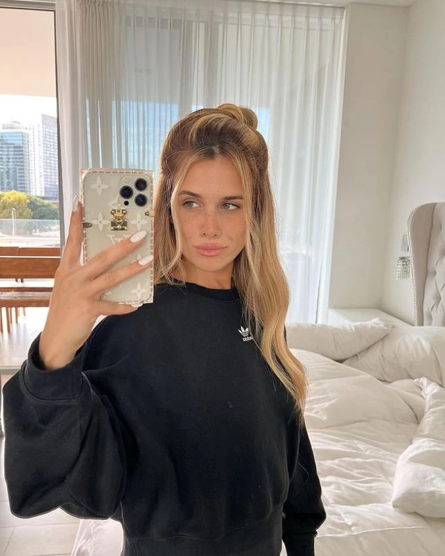 Cama con respaldo en capitoné en blanco, pisos de porcelanato y ventanales de piso a techo son otras características del búnker de la ex pareja de Rodrigo De Paul, que aprovecha los días de sol para disfrutar del inmenso balcón con vista privilegiada al barrio porteño más exclusivo.