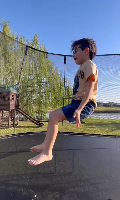 Los chicos tienen casita en el árbol, una inmensa cama elástica para saltar al sol y los grandes gozan del eterno verde del parque y del muelle que se puede ver desde el interior de la casa gracias a sus amplios ventanales de piso a techo que recorren el living.