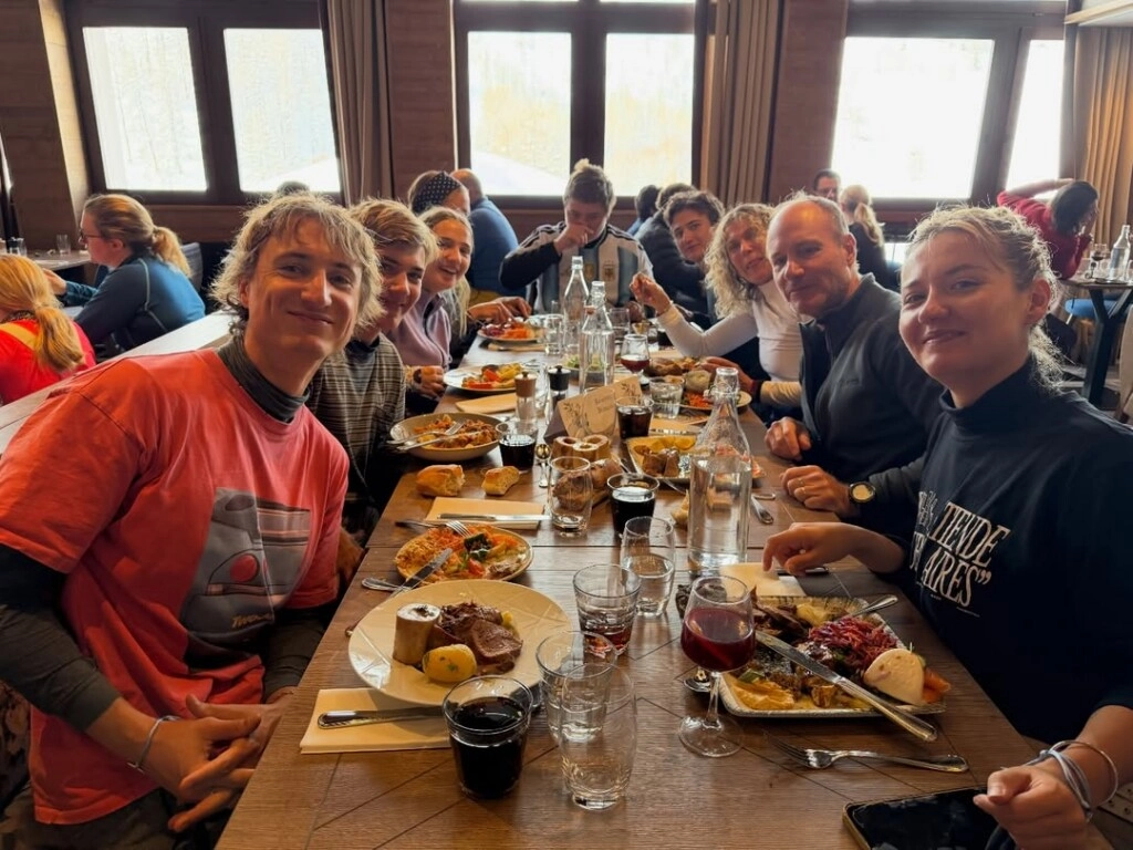 También hubo espacio para la intimidad del hotel cinco estrellas que eligieron para hospedarse, donde la experiencia fue, según la propia chef, “espectacular”. Pero no todo fue adrenalina. Después de largas jornadas en la montaña, el plan continuaba puertas adentro con chocolate caliente, copas de vino y espacios de relax. Yoga, meditación, sauna y piscina climatizada completaron una agenda pensada para equilibrar el movimiento con la calma.