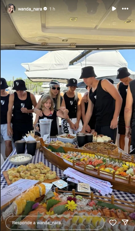Como parte del regalo especial que Wanda le hizo para sorprenderlo, se encontraba en esta fiesta en un yate. En su interior se vio una mesa armada y adonde, entre varias comidas, había sushi y todo un ágape especial para el cumpleañeros y sus invitados.