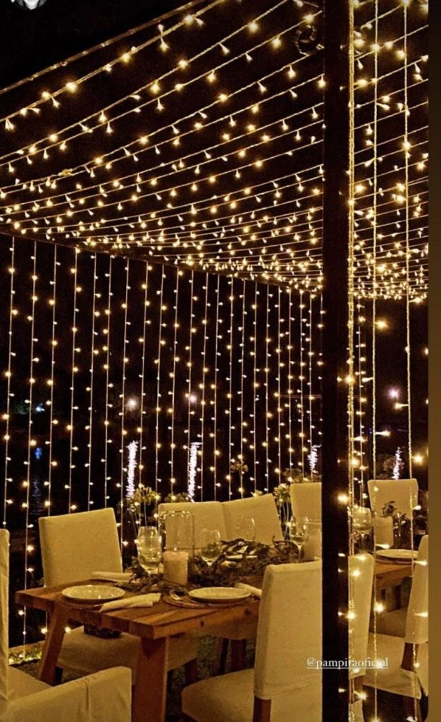 Ahora bien, lo llamativo de todo esto es que Pampita eligió decorar su casa de la misma manera en que Wanda Nara lo hizo para Navidad. Una mesa al aire libre, a orillas del lago que está detrás de su casa y unas luces que caen en forma de cascada alrededor de toda la mesa y las sillas.