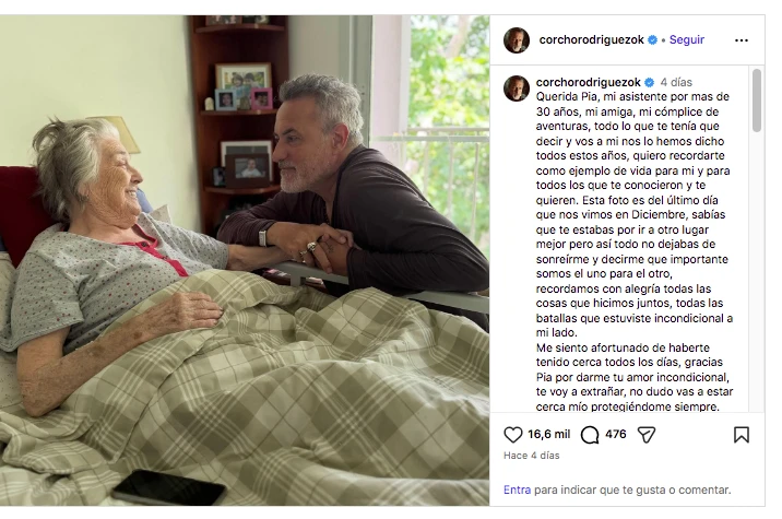 Resulta que Corcho padeció el paso de plano de Pía, esa mujer que trabajó a su lado durante tres décadas. Por eso, el empresario escribió unas líneas conmovedoras para despedirla. “Querida Pia, mi asistente por más de 30 años, mi amiga, mi cómplice de aventuras”, arrancó.