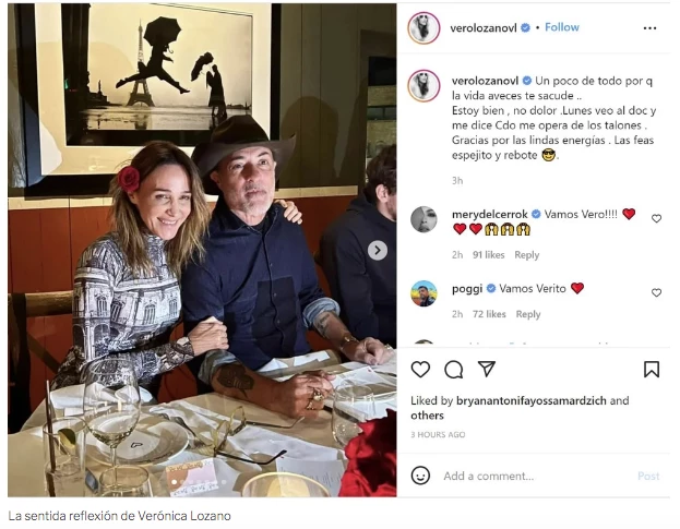 En ese contexto, y motorizada por las emociones intensas que experimentó, Verónica decidió escribir unas líneas en su Instagram y compartió una reflexión cargada de sensibilidad: “Un poco de todo porque la vida a veces te sacude...Estoy bien, no tengo dolor. El lunes veo al doctor y me dice cuando me opera los talones. Gracias por las lindas energías. Las feas, espejito y rebote”.