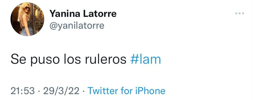 Ahora bien, ni bien comenzó la entrevista Ángel de Brito le hizo un comentario a Victoria sobre su look: "Es una Vannucci nueva. Que lookete pegaste". Sin embargo, pícara como siempre, Yanina Latorre lanzó en su cuenta de Twitter: "Se puso los ruleros #LAM".