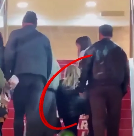 ¿Qué se ve en el clip? A Magnolia en el estadio, rodeada de hombres de seguridad al retirarse luego de un partido. Mientras sube los escalones de las gradas, uno de ellos, vestido de campera negra brillante, la toma con fuerza del brazo y se la lleva con él.
