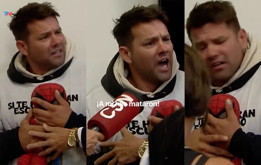 Cuando el papá de Angel vio que en el mismo salón estaban su ex mujer y el padrastro de su hijo no pudo contenerse. Sobre su pecho llevaba un muñeco del Hombre Araña que era el preferido del nene. Era, que se entienda, como si estuviera allí con él. "¡Asesinos! ¡Asesinos son! ¡Mataron a mi hijo! ¡A mi hijo mataron! Asesinos de mierda! ¡Hijos de puta! ¡Van a pagar con perpetua los dos!". Allí los sacaron, y hasta pareció que las fuerzas policiales les dieron "unos segunditos" para desahogarse. Tremenda la imagen en un caso cada vez más desgarrador.