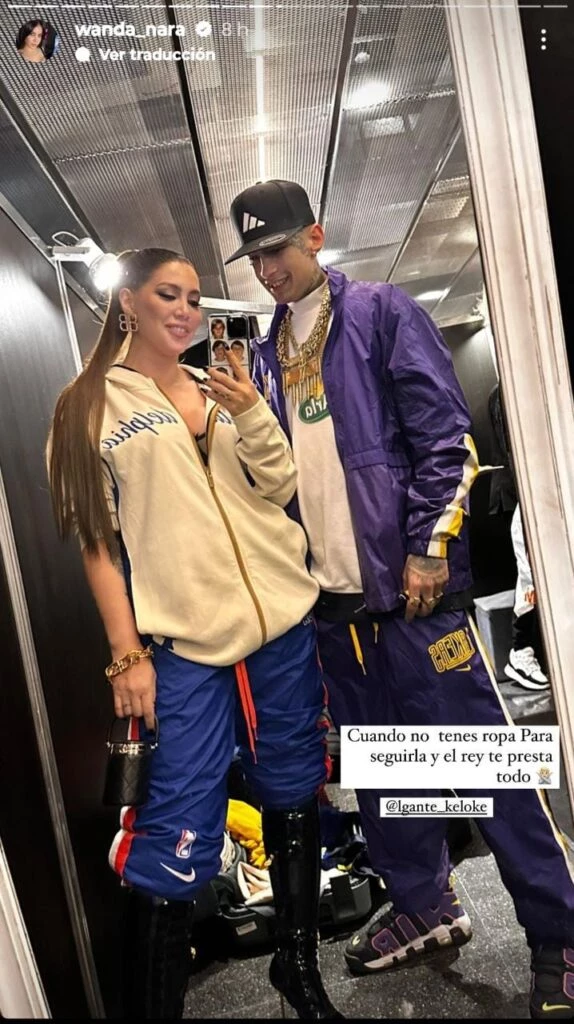 En una de las historias la conductora de Masterchef puso: "Cuando no tenes ropa para seguirla y el rey te presta todo" con una foto de ellos frente al espejo con ropa deportiva y ella de botas, las mismas que usó en la alfombra roja en la que los dos usaron looks total black de pies a cabeza.